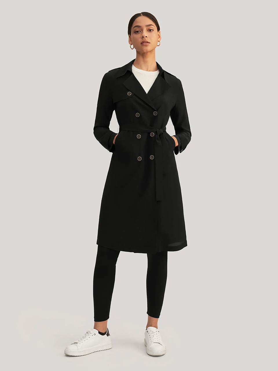 サイドポケットとウエストタイでデザインされたこのドレスは、毎日の通勤や休暇に実用的で多目的に使えます。秋先のムードをまといたい日は、落ち着いた色味の羽織をプラス。