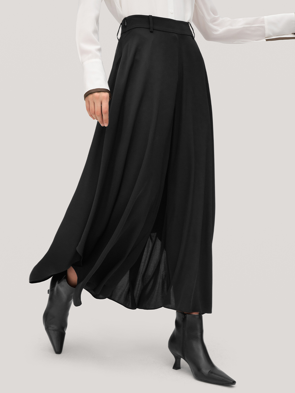 30匁マルベリーシルク ハイウエスト ワイドパンツ
