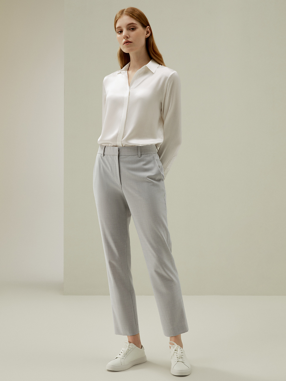 ウール100% クラシックセミワイドパンツ - ビジネス&カジュアル対応