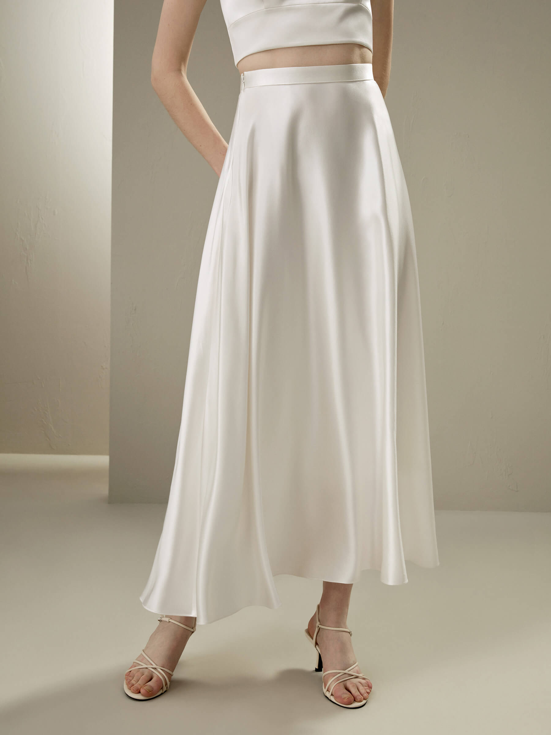 たっぷりなフレアがレディライクなスカート。ランダムに見える裾の広がりも歩くたびに動きが出て、着るだけでときめきます。