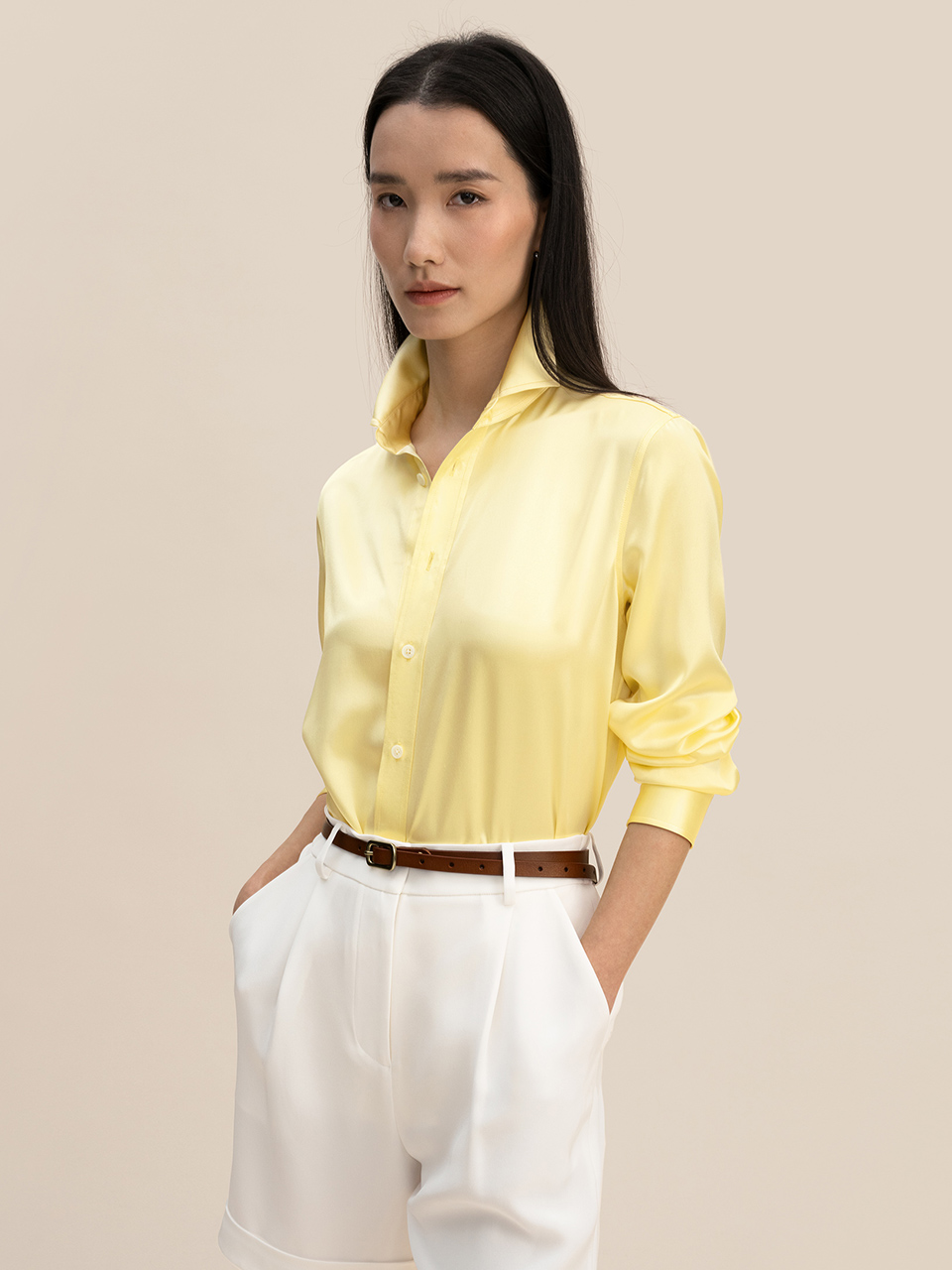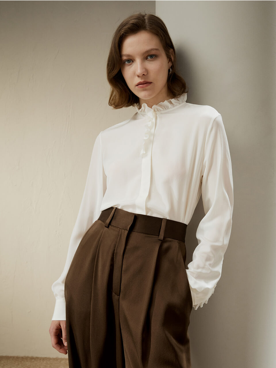 晩夏の夕涼しい風に吹かれながら、ボウタイブラウスを着て街を歩くと、涼しげな風合いが心地よく感じられます。