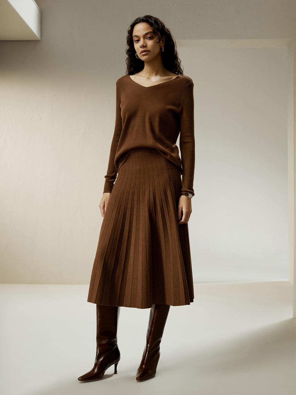 素材の質感が非常に高く、上品な光沢があります。カシミヤの風合いとシルクの滑らかさが絶妙に組み合わさっており、高級感が漂っています。とても柔らかくて着心地が良いです。肌に触れると、まるでぬくもりに包まれているような感覚があります。