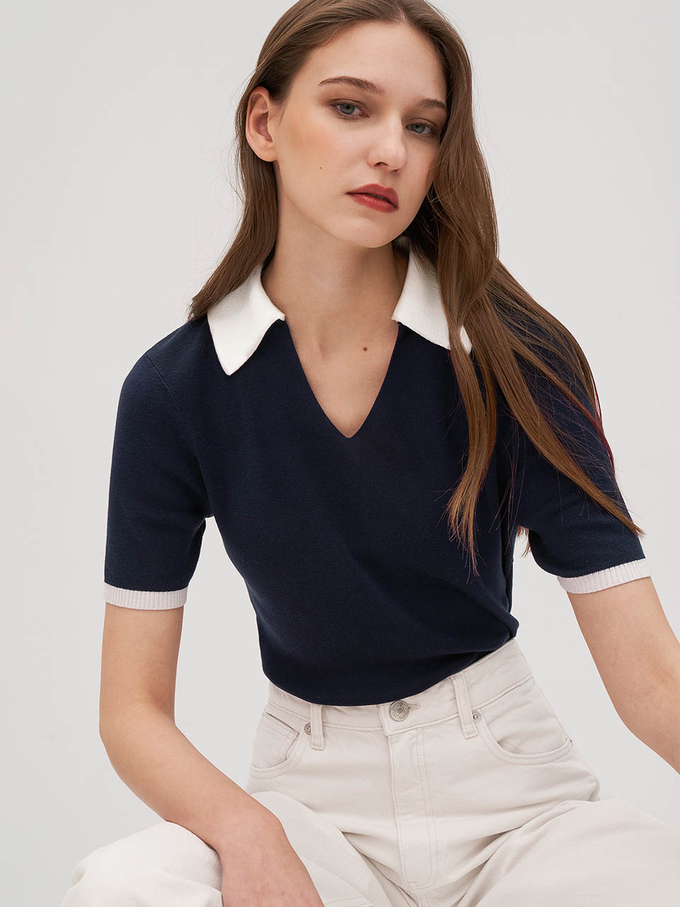 カジュアルでおしゃれな印象を演出するために、Vネックシルクニットトップスにカジュアルパンツを合わせ、軽快なスニーカーで満喫しましょう。
