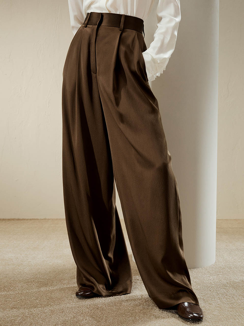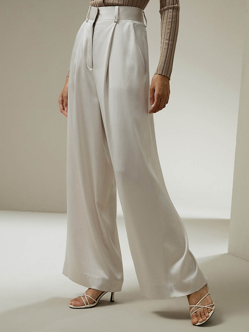 リラックスした雰囲気を演出するために、軽やかなワイドパンツにカジュアルなシルクTシャツを合わせ、帽子とサンダルで楽しんでください。